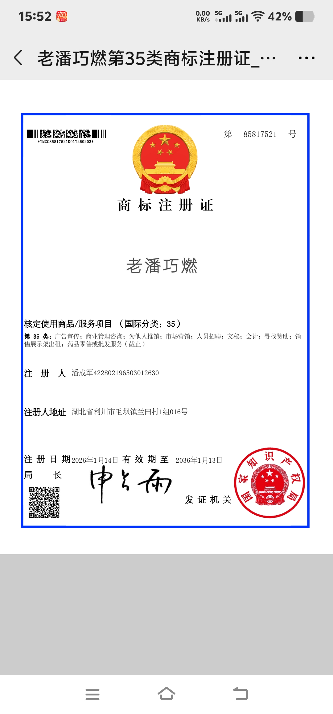 商标证书